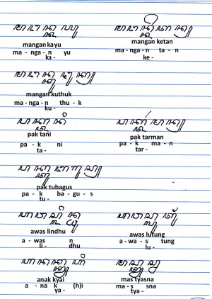 Tuladha panulisan tembung saha ukara kanthi aksara Jawa